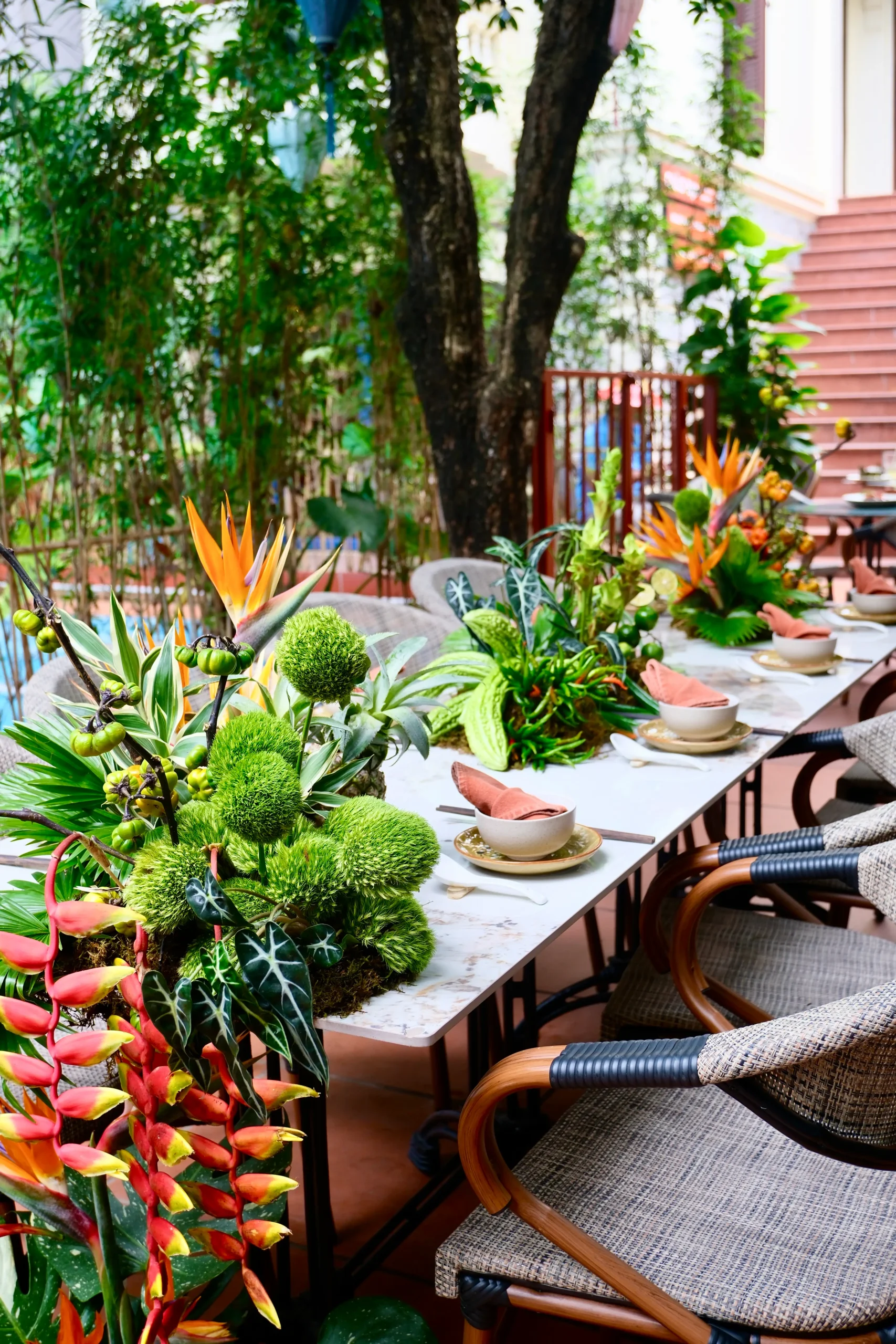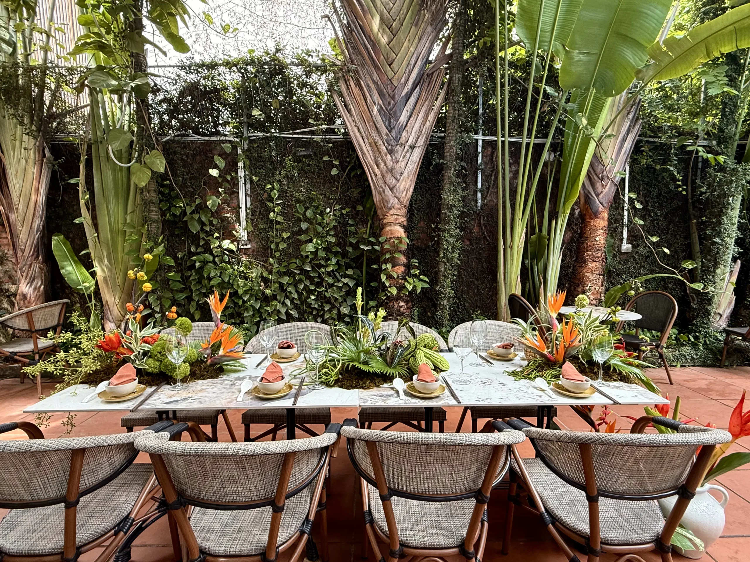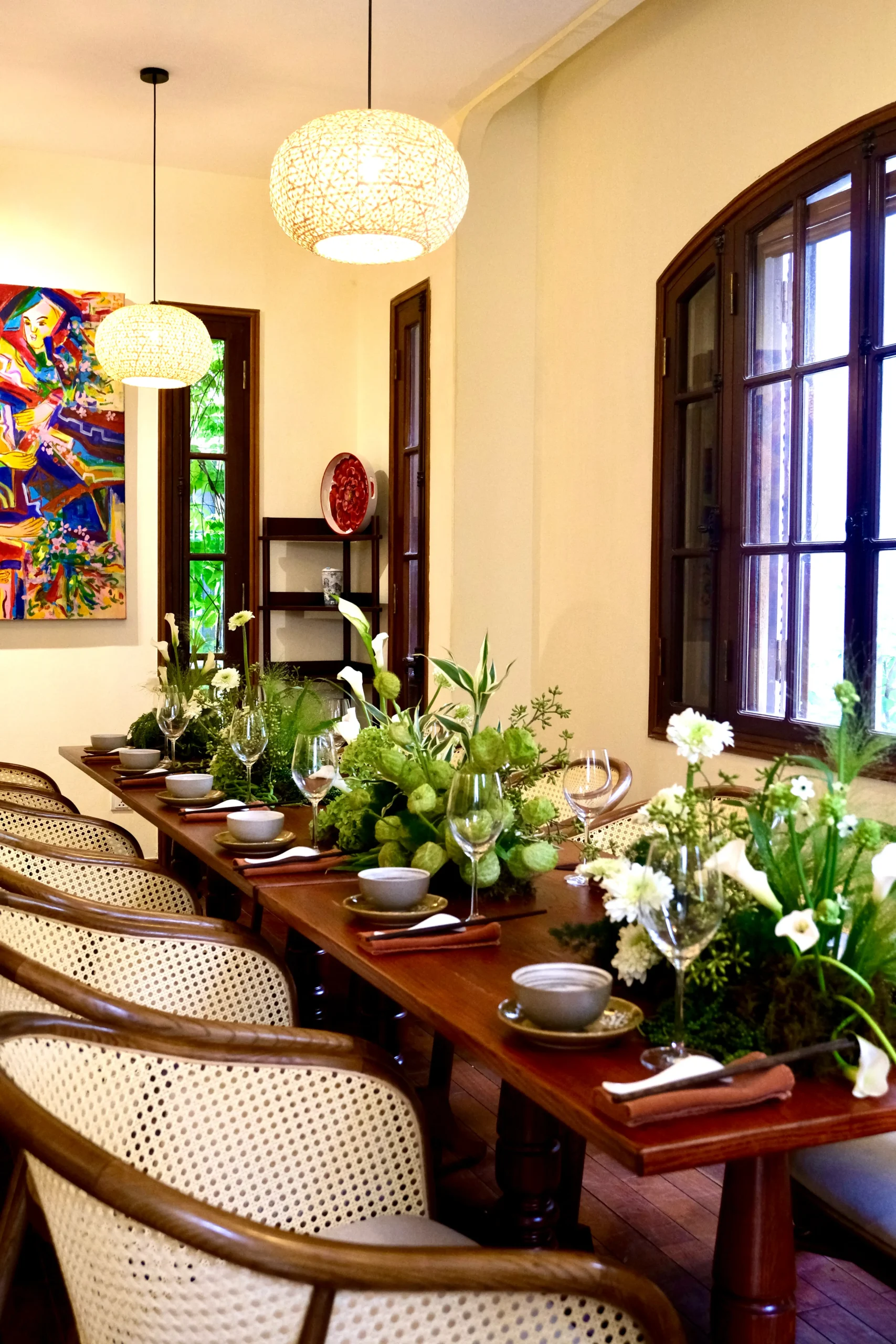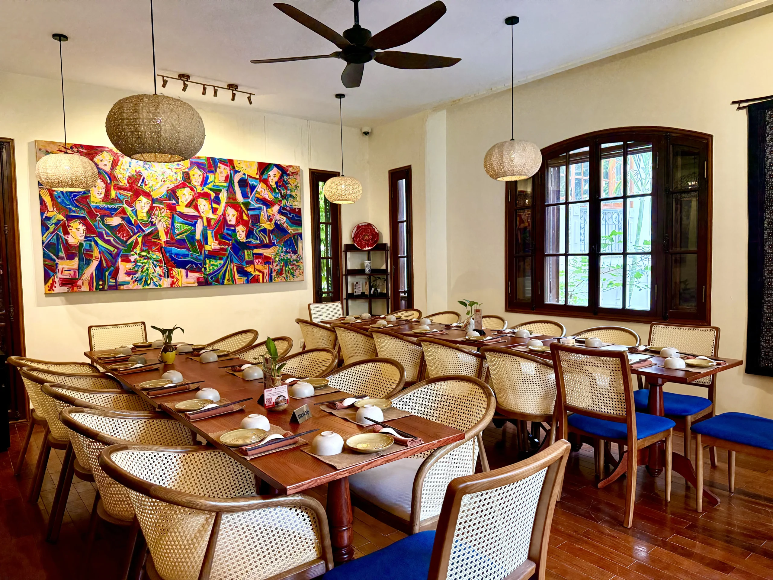 Tucked away in charming Alley 11 on Tô Ngọc Vân Street, just a short two-minute walk from West Lake, Chào Bạn is set in the elegant French-style Villa 28, hidden within a refreshing tropical garden with a sparkling pool. The stunning space will captivate you the moment you arrive.