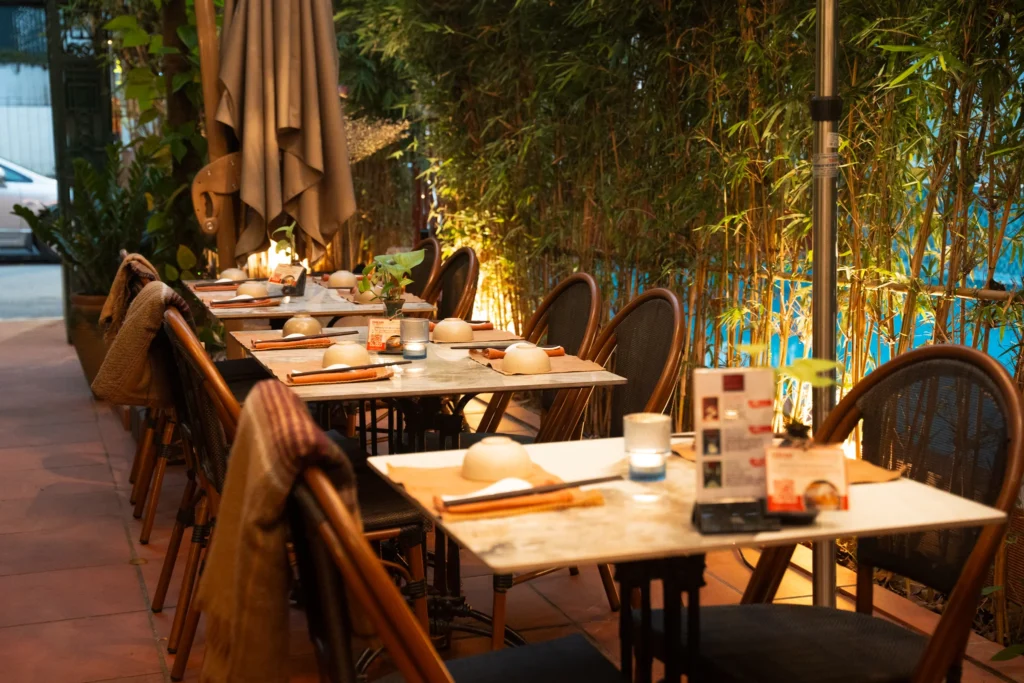 Bước qua cánh cổng ấy, một thế giới hoàn toàn khác hiện ra, tách biệt hẳn với sự ồn ào, vội vã của phố xá. Điều khiến nhiều khách phải dừng chân rồi đem lòng yêu nơi này chính là một vườn cây nhiệt đới xanh mướt đầy sức sống. Những cây lớn lâu năm tỏa bóng mát rượi, đan xen với các tán lá rộng đặc trưng của vùng nhiệt đới, tạo nên một tầng mái tự nhiên cho thực khách.