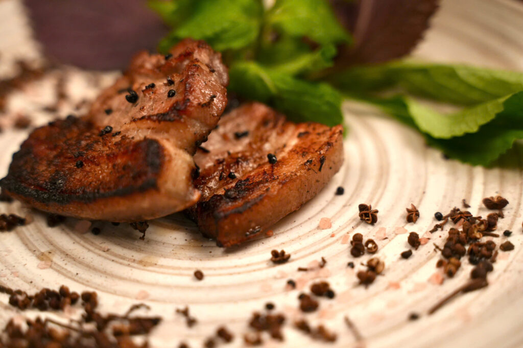 Thịt lợn nướng lá mắc mật là một trong những món nướng tiêu biểu, thể hiện rõ tinh thần ẩm thực miền núi phía Bắc trong cách tiếp cận hiện đại của Chào Bạn. Thịt lợn và lá mắc mật được nướng cùng nhau, không cầu kỳ trong xử lý nhưng đòi hỏi sự chính xác về nhiệt độ và thời gian.
